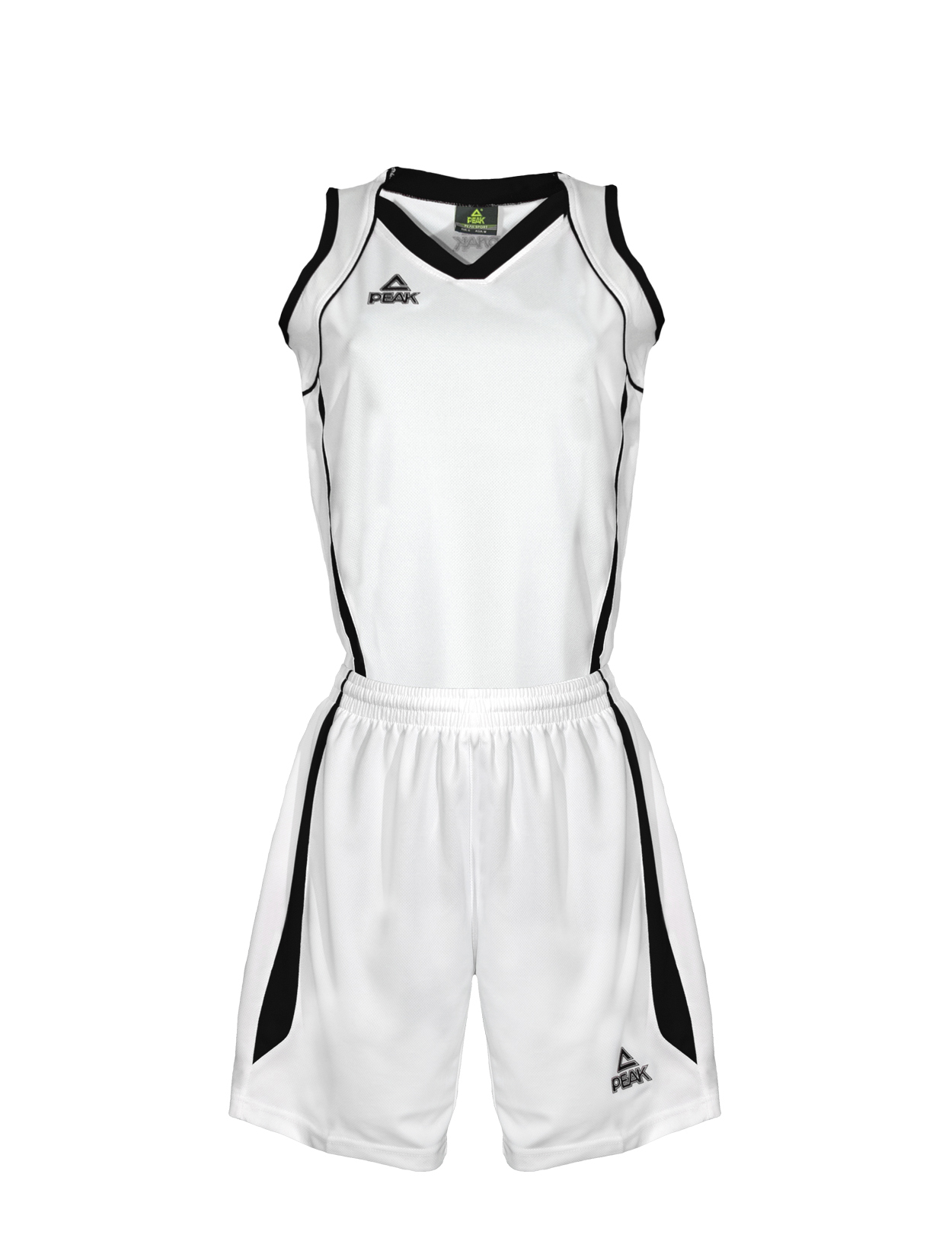 Das qualitativ hochwertige Trikot hat farbig abgesetzte Bündchen und Streifen und ein kleines, farblich passendes PEAK-Logo im Brustbereich. Die Shorts haben entsprechend farbige, seitliche Streifen und ein kleines PEAK-Logo auf dem linken Bein.